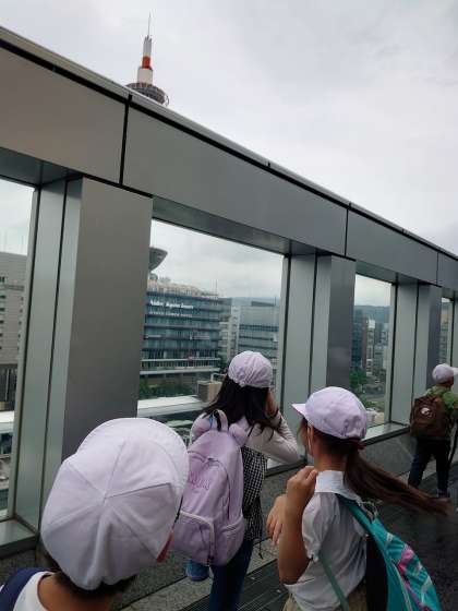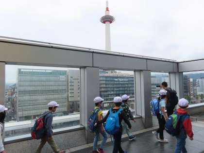 京都駅の階段を上ると、京都タワーや駅付近の様子が良く見える場所がありました。