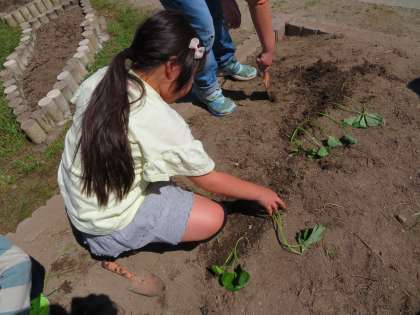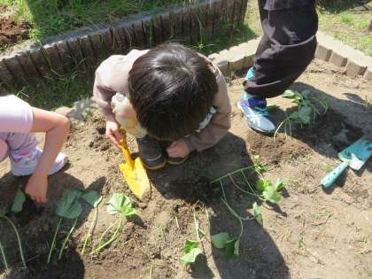 しっかり観察をして、様々な発見をした後に、畑に植えに行きました。
