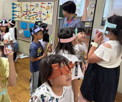 下校時も身につけて帰った子たちもいましたよ。とっても楽しい変身タイムでした♪