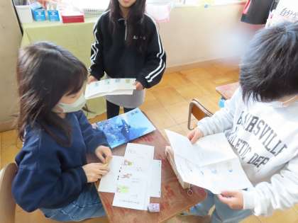 どんな出来事が起こるのか?それはどのように解決するのか?四枚の絵から想像を広げて作ることができました。
