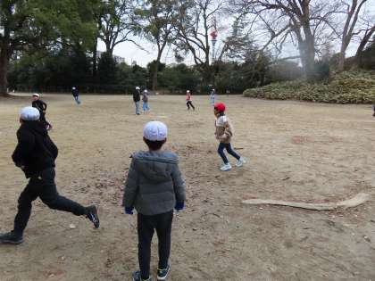 食べ終わった後は、広いグラウンドで遊んでいました。