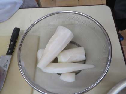 大根を食べやすい大きさに包丁で切りました。