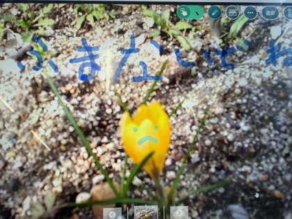 図画工作科で「草花のおしゃべり」の学習をしました。草花の写真をGIGA端末で撮り、どんなことをお話しているのか、どんな顔をしているのか想像してペンで描き足しました。