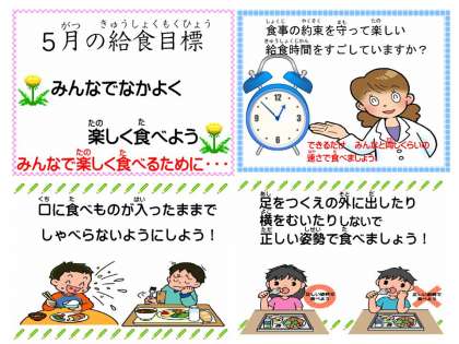 1年生の時は,偏食で,なかなか食べられなかったり,食べるのに時間がかかったり,食べることに集中できなかったりしていた子どもたちも,時間内に,ほとんど何でも食べられるように成長してきました。