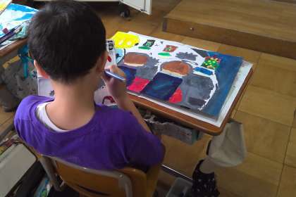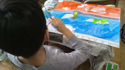自分が覚えている風景に近づけるために細かいところまで書いたり、絵の具を混ぜて自分が想像する色を作り出したりと工夫して仕上げようとする姿がたくさん見られました。