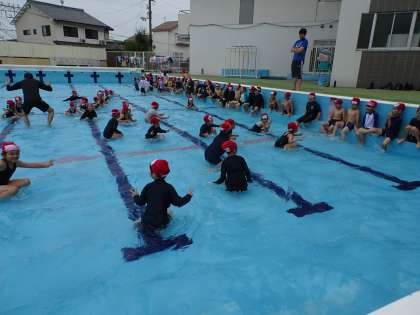 今週は、雨のため1日しか入れませんでしたが、水の中でのまねっこ遊びを楽しみました。
