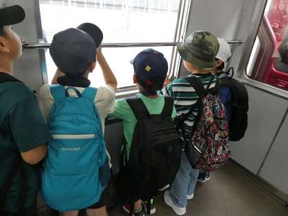 電車に乗って、みんなで楽しくいきました。