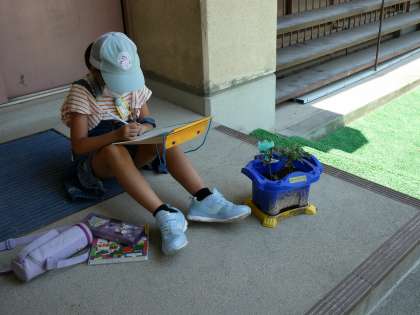 自分の育てているトマトの様子を詳しく観察カードに書きました。