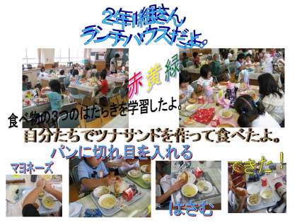 「ぱんぷきんちゃうだーのかぼちゃが,とてもおいしかったです。またつくってください。つなさんどのぐと,こっぺぱんでつなさんどができました。たべるととてもおいしかったです。またつくってください。」・・・1ねんせい