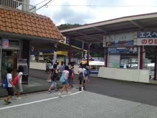 賢島から船に乗って、みさきの家の船着場に到着しました。これから、入所式です。