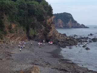 <磯観察>天気も何とかもっています。磯観察や地層の観察をしています。