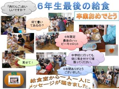 卒業する6年生にとっては,小学校生活最後の給食ということになります。