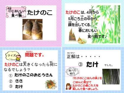 今日は,春に旬を迎える「たけのこ」を使った『たけのこご飯』でした。