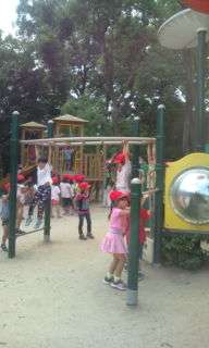 お弁当を美味しく食べました。未来くん広場で楽しく遊んでいます。