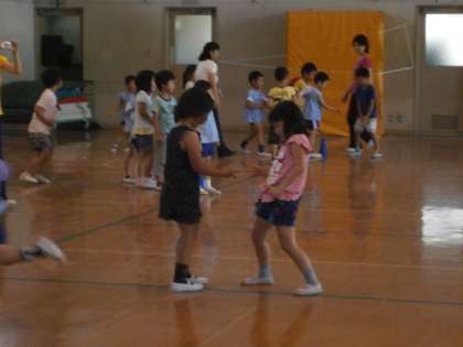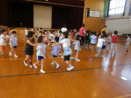1年生と伏見幼児園の子どもたちの交流会がありました。1年生が幼児園の子どもたちと楽しく活動していました。「かもつ列車」をしたときに,1年生の子どもがかがんで幼児園の子どもの背に合わせていました。おねいさん,おにいさんとして,やさしい心が育ちました。