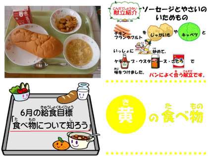 「今日の給食でソーセージが柔らかくて味も出て,とても美味しかったです。またたまごがほっかほっかしていて,おいしかったです。また,美味しい給食をつくってください。」