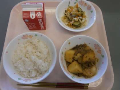今日の給食は,発祥が京都府の舞鶴だといわれている『肉じゃが』でした。