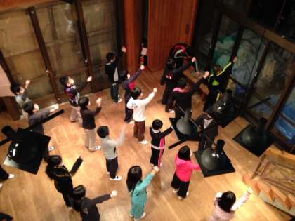 お風呂から上がった後、クラスに分かれてスタンツの練習をしています!