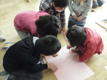 今日は,3年2組,5年2組にきてもらって,一緒に準備をしました。
