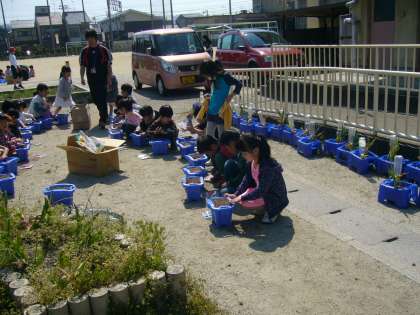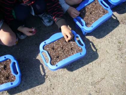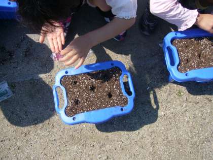 1年 アサガオの種をまきました