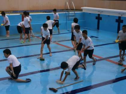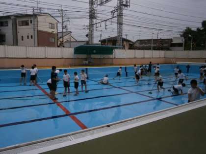 6月4日(水)6校時から,もうすぐ始まる「水泳学習」のためのプール清掃が行われました。