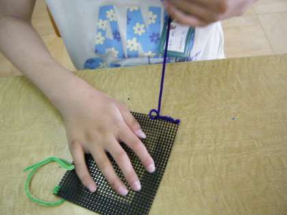プランターの底に敷く鉢底ネットを2枚重ねてモールで留めます。