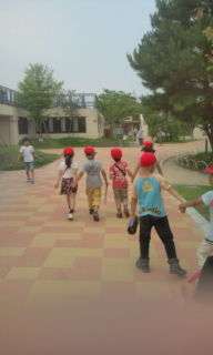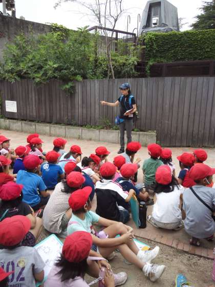 動物園でのラリーが開始しました。みんな集まって先生から説明を聞きます。1,2年生が一緒に動物園の中を散策します。手をつないで,仲良く出発しました。