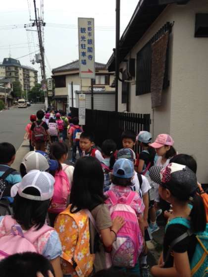 バスで銀閣寺方面へ向かいました。車内では友達と楽しくお話をしていました。車酔いもなく子ども達はとてもたのしそうです。
