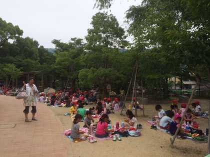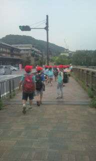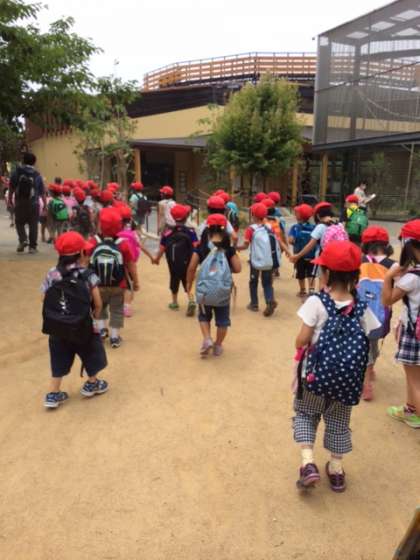 おいしいお弁当を縦割りグループで食べて,たくさん動物も見て,大満足の一日になりました。これから,三条駅に向かって歩きます。もうすぐ学校に帰ります。待っててね。
