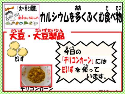 「今日のチリコンカーンがとてもおいしかったです。とても豆がやわらかくてよかったです。また おいしい給食をつくってください。楽しみにしています。今日の野菜のホットマリネのじゃがいもがやわらかくてとてもおいしかったです。またつくってください。」・・・5ねんせい