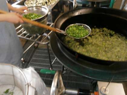 「なす」や「万願寺とうがらし」は子どもたちの苦手な食品の一つでもあるということで,給食室では,「しっかり食べてくれるかな。」と心配しながらの調理でした。でも,初めて食べる1年生の様子は,全然心配いりませんでした。担任の先生からも,「まぜて食べる給食は,早く食べられるだけじゃなくて,ごはんもしっかり食べられます。」と聞きました。