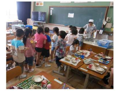 1年生の給食参観では,『肉じゃが』のおかわりにたくさんの行列ができていました。ごはんもおかずも完食した子どもたちに,保護者も安心していただけたのではないかなと思います。
