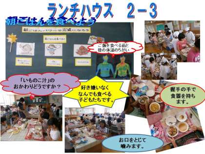 「とらまめがおいしかったよ。いものこじる。きざみのり。とらまめがすごくおいしかったです。」・・・1ねんせい(ひらがながかけるようになった1ねんせい。子どもたちの思いがとてもつたわってきます。)