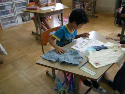 いくつかの服を見たり触ったりしながら,季節(気温)に合わせた服を選んでみました。