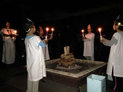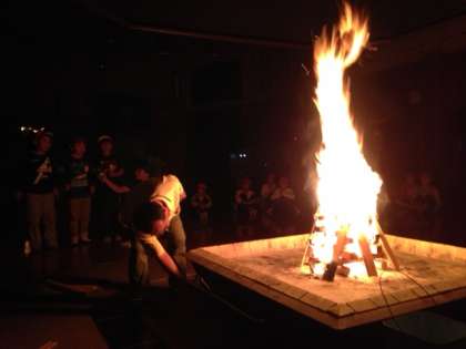 厳かな雰囲気で始まり,炎とともに盛り上がる「キャンプファイヤー」は,室内でも