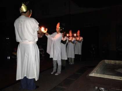 あいにくの天候により,野外での「キャンプファイヤー」ではなく,