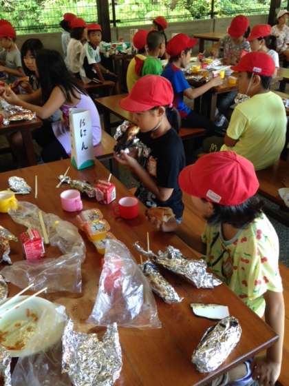 今日の「朝食」は「パックドック」。少々焦げ目ができましたが,みんなでおいしく