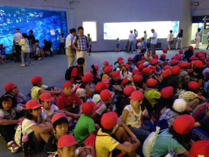 4年生・つくしの子ども達は,「みさきの家」に別れを告げ,「鳥羽水族館」に向かいました。これからグループごとに水族館内を見学します。