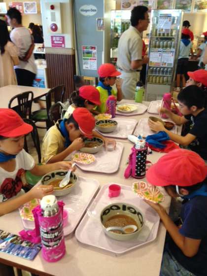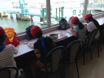 子ども達は,鳥羽水族館で昼食中です。