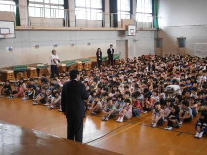 本日は,「始業式」「朝会」「ともだちの日の取組」が行われています。