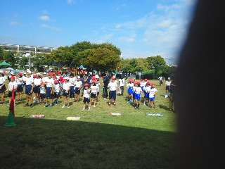 開会式と準備体操を終えて,これから競技がはじまります。