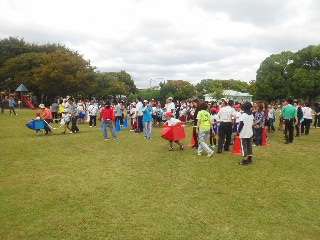 参加しているお友達と一緒のバルーンを持って演技をすることで,みんなの輪が広がるといいですね。