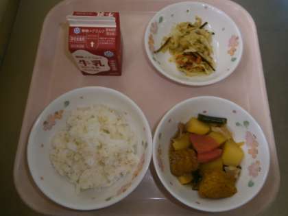 今日の給食は,『豚肉と野菜の煮つけ』と『ごま酢煮』でした。