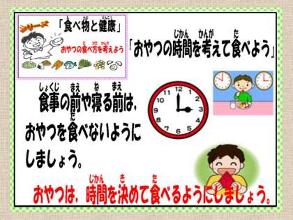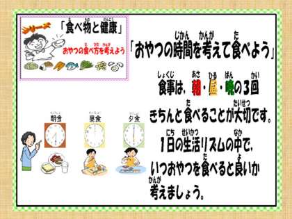 「につけのあつあげがかみやすかったです。むぎごはんがたべやすかったです。ごまずにがとてもおいしかったです。おやつはあまいものだとおもってたけどちがいました。」・・・2ねんせい