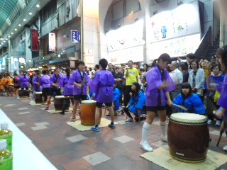 子ども達の太鼓の演奏が,大手筋のアーケードを響き渡らせました。
