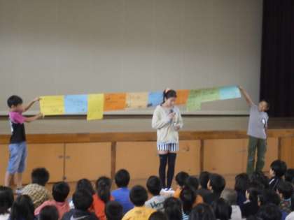 児童朝会(委員会活動報告)〜図書・美化・保健〜 2