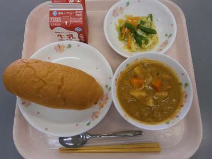 パンとカレーの組み合わせは久しぶりで,「ごはんの方が良かった。」と言っている子どもも多かったですが,やはりカレーは人気があります。