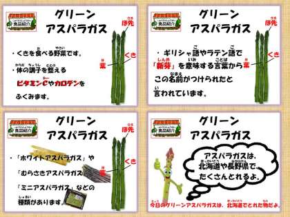 「アスパラガスのソテーがシャキシャキしていておいしかったです。」・・・4ねんせい