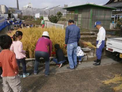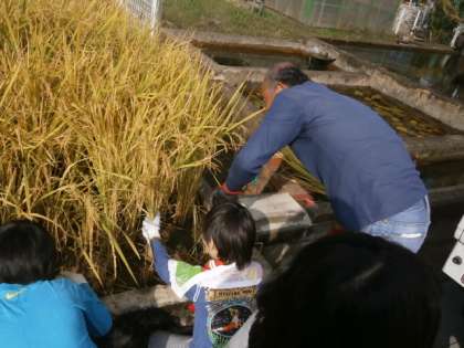稲刈りの経験が初めての子どもが多く,みんなが大喜びで活動をしていました。