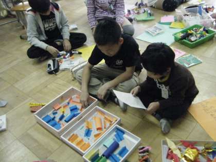 たくさんきれいな景品を作ってくれたり,つくしの子どもたちがルール説明の練習をするのを聞いてくれたりしました。何をしたらいいか自分たちで考えてくれて,絵あわせカードがきちんとそろっているか,コリントゲームのどんぐりがスムーズに転がるかなどいろいろなことに気付いて手伝ってくれました。